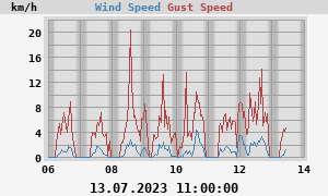 Today's max: 5 km/h at 13:45:00